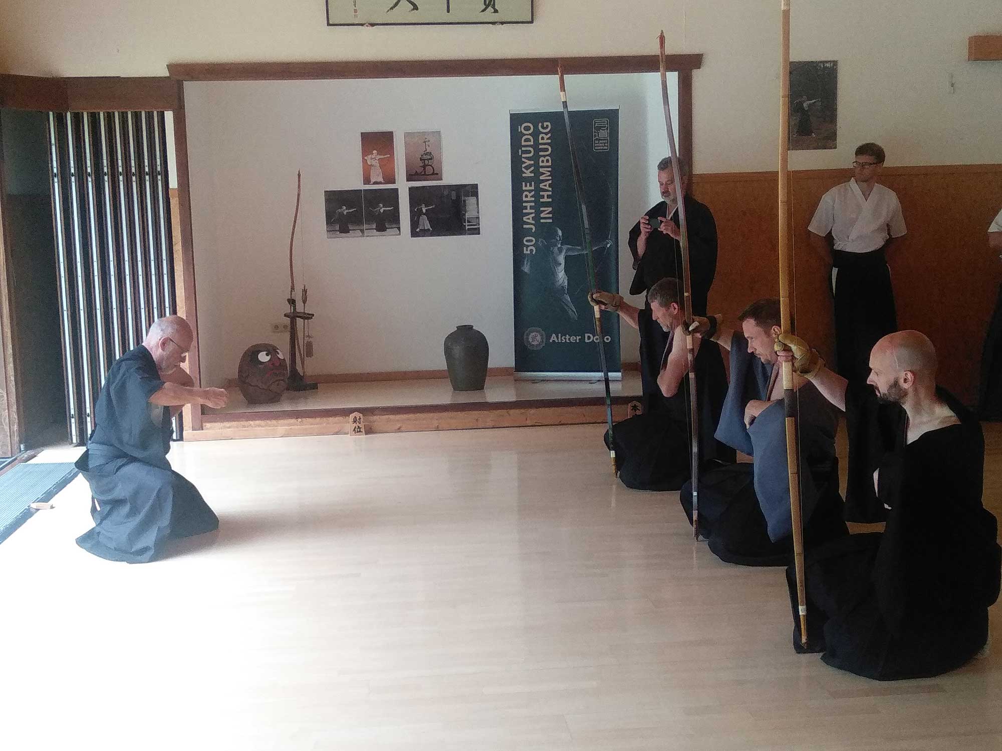 Dojonk öt tagja egy igen intenzív és eredményes egy hetet tölthetett Hamburgban az Alster Dojo falain belül.Több mint 10 éve vesznek részt Kyudokák az egy hetes szemináriumon ,melynek házigazdája a Németországi Alster Dojo Cornelia és Feliks Hoff vezetésével. Idén mi is eljutottunk ide és talán egy újabb lépést tettünk előre a nemzetközi Kyudo életében.Egy igazán autentikus környezetben gyakorolhattunk és cserélhettünk tapasztalatot öt ország íjászaival negyven íjászával.